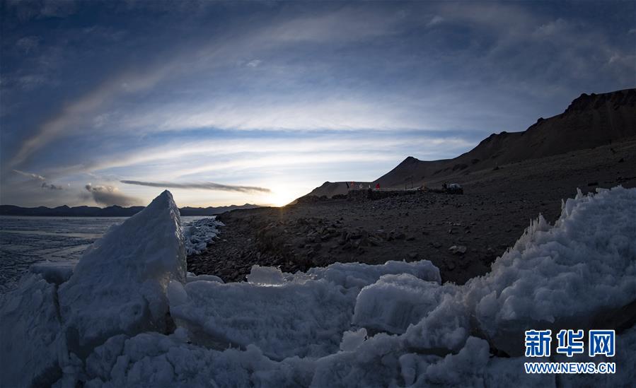 4月15日拍摄的普姆雍措一角。 随着气温升高,位于西藏山南市浪卡子县境内的普姆雍措开始解冻开湖。普姆雍措湖边雪山围绕,融雪汇入到湖中,形成美丽的高原湖泊。 新华社记者 晋美多吉 摄