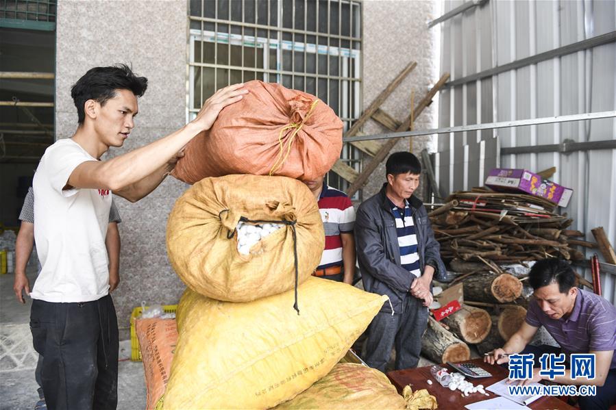 4月17日,人们在广西凌云县下甲镇平怀村的一处蚕茧收购点交易。 新华社记者 曹祎铭 摄