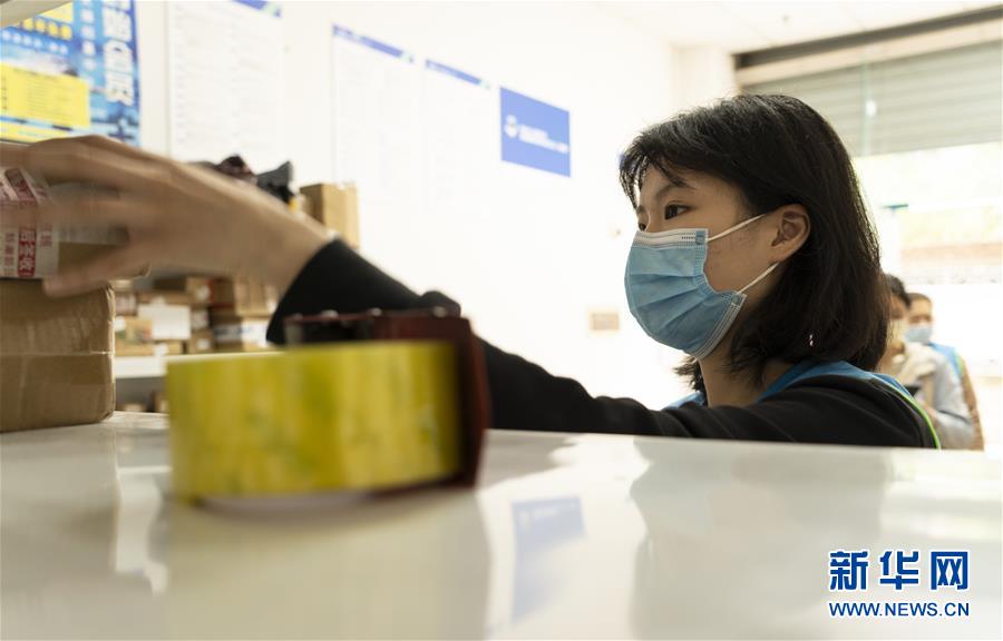 4月17日,在四川省简阳市的一家菜鸟驿站,马海燕在整理快递货品。 新华社记者 李梦馨 摄