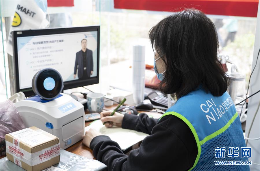 4月14日,在北京科技大学附属中学,初中数学老师王晶在为学生上初三数学课。 受新冠肺炎疫情影响,北京市中小学延期开学。根据北京市教委相关要求,从4月13日起,北京中小学生开启居家防疫与线上学科学习相结合的新阶段。 新华社记者 任超 摄