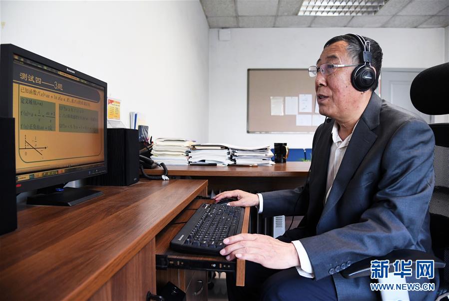 4月14日,在北京科技大学附属中学,高中数学老师范先荣在为学生上高二数学课。 受新冠肺炎疫情影响,北京市中小学延期开学。根据北京市教委相关要求,从4月13日起,北京中小学生开启居家防疫与线上学科学习相结合的新阶段。 新华社记者 任超 摄
