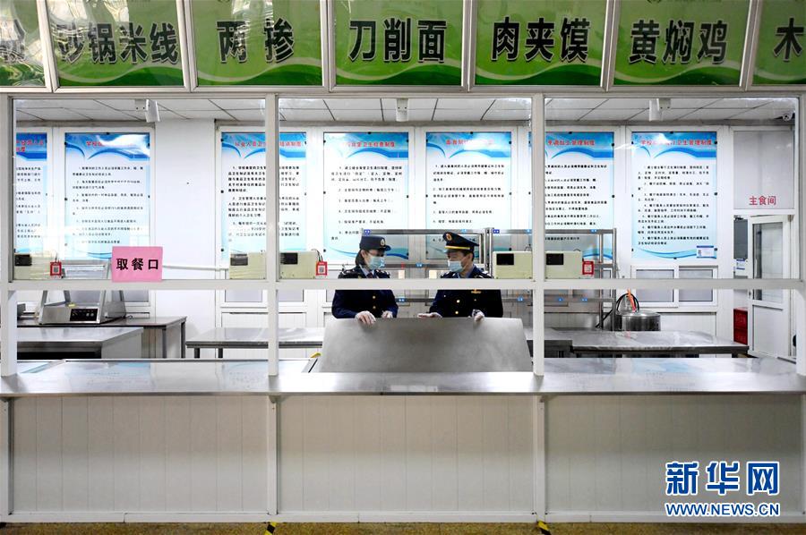 4月17日,石家庄桥西区市场监督管理局工作人员在石家庄市第六中学食堂检查卫生情况。新华社记者 王晓 摄