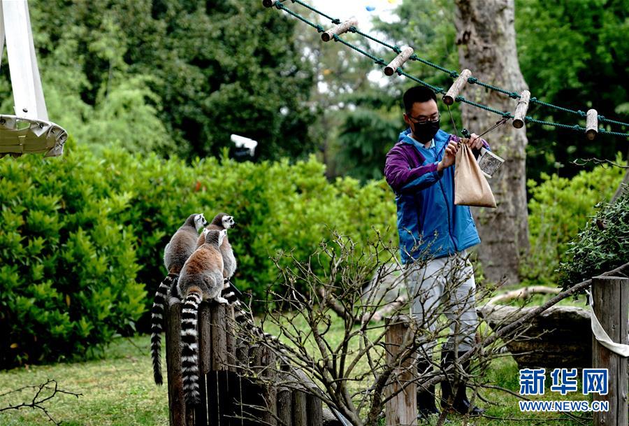 4月18日,上海动物园饲养员张益顺在检查环尾狐猴的食物袋。 上海动物园根据各类动物的生物学特性和原栖息地特点,采取模仿环境设计、改善投喂方式、增加取食难度、提供新颖玩具等“丰容”方式,丰富动物们的日常生活内容,促进它们展示更多自然行为。 新华社记者 张建松 摄