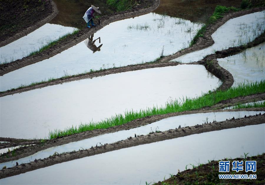 4月18日,在湖北省宣恩县沙道沟镇班大湖村,农民在田间劳作。 谷雨将至,各地农民抢抓农时,开展春种春管,田间地头一派繁忙景象。 新华社发(王俊 摄)