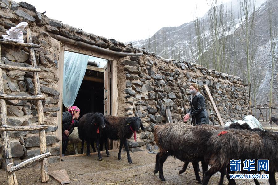 4月20日,艾散·托合提的妻子克依马特·玉散(左)和女儿古丽多来提·艾散(右)将牧场的羊赶出羊圈。 艾散·托合提是地处帕米尔高原的新疆阿克陶县红新村牧民,在定居兴牧、脱贫攻坚一系列政策扶持下,艾散·托合提一家在2012年从山上下迁,住进搬迁安置点红新村,住上了砖瓦房,建起了牲畜棚舍。在新疆维吾尔自治区生态环境厅“访民情、惠民生、聚民心”驻村工作队和当地干部的积极引导下,他家的收入越来越高,目前有260多只羊和35头牦牛。2019年,艾散·托合提买了一辆越野汽车,告别骑马放牧,成为帕米尔高原上开车放羊的“新”牧民。 新华社记者 高晗 摄