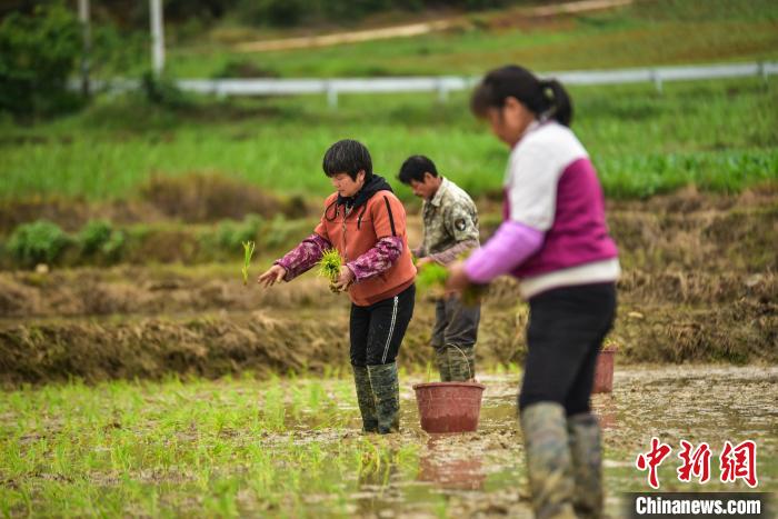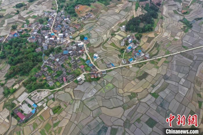 4月21日,广西柳州市融安县的农民正在田中为春耕忙碌,蓄满水的农田如明镜一般,一副诗意景象。融安县位于广西的北部山区,水稻种植时间较晚。为鼓励农民种植主粮,广西各级政府对水稻等粮食作物进行补贴。在融安县,种植1亩包含水稻在内的粮食作物能获得补贴300元以上,预计2020年全县粮食播种面积超26万亩,产量超8万吨。
