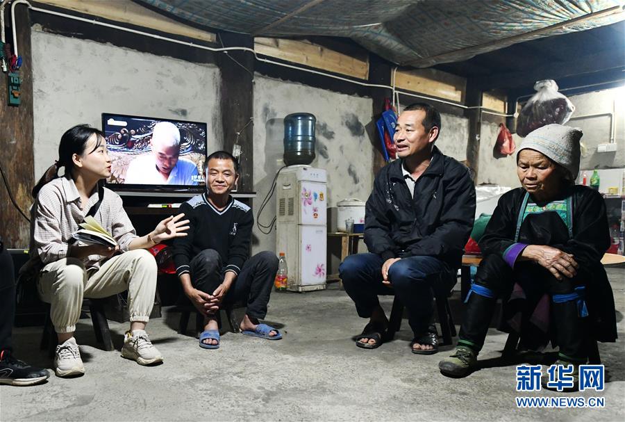 吴贤艳(左一)夜访贫困户(4月18日摄)。 新华社记者 杨文斌 摄
