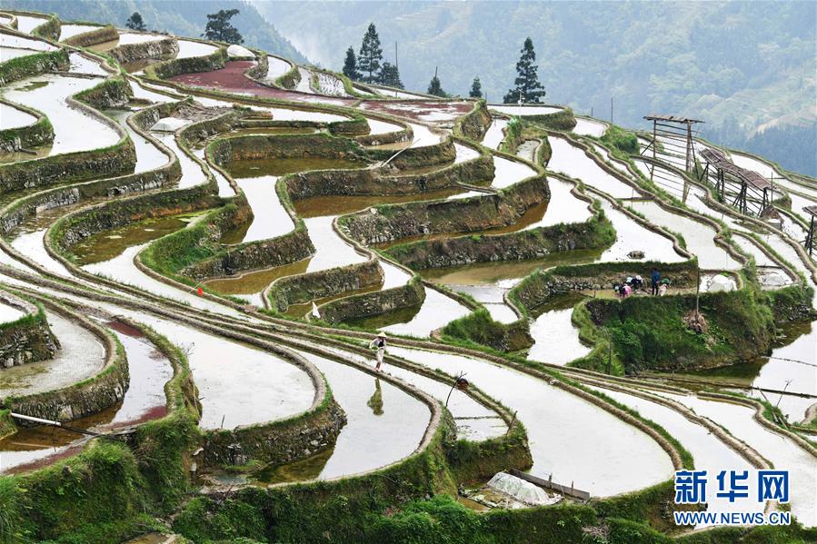 吴贤艳在帮助村民插小秧时搬运秧苗(4月18日摄)。 新华社记者 杨文斌 摄
