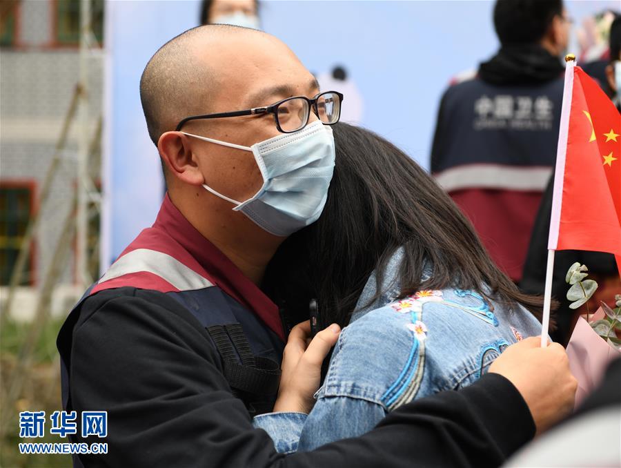 4月21日,在四川大学华西医院,医疗队队员和家人相互拥抱。 当日,来自四川大学华西医院、华西第二医院、华西第四医院的医疗队队员解除隔离休整,与分别许久的家人、同事团聚,紧紧相拥。 新华社记者 王曦 摄