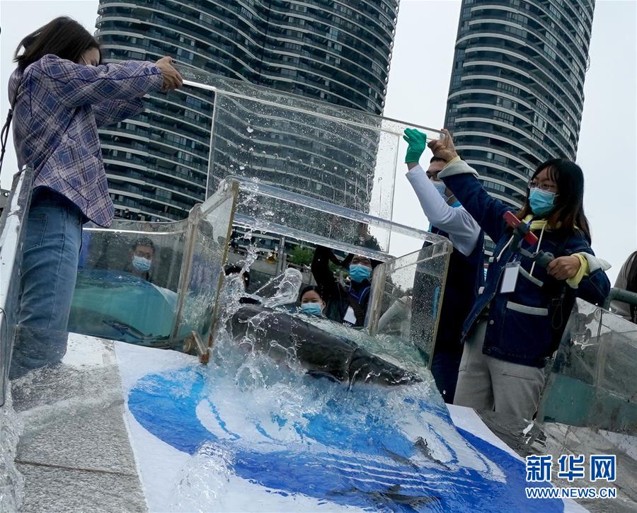 4月22日,市民将中华鲟放归长江。 当日,在湖北省宜昌市的长江珍稀鱼类放流点,一万尾子二代中华鲟放归长江,对自然环境中的中华鲟物种资源再做补充。 新华社发(肖佳法 摄)
