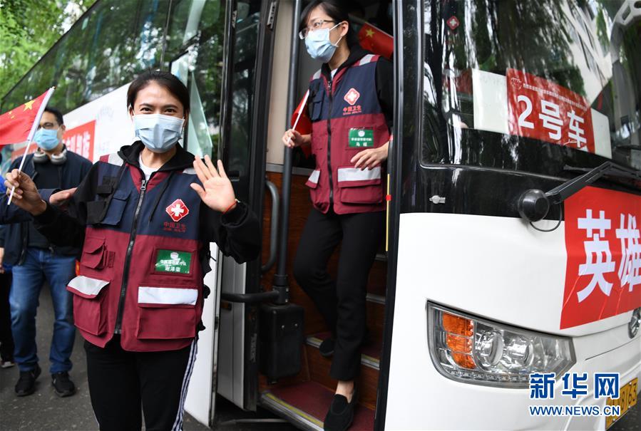 4月21日,谢泽荣乘坐的大巴抵达四川大学华西医院。新华社记者王曦摄