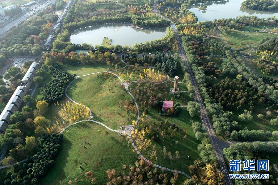 这是西安大明宫国家遗址公园(2019年11月13日摄,无人机照片)。 近年来,陕西西安以城市高质量扩容发展为目标,统筹做好生态环境建设。通过新建绿地公园、水体综合治理等方式不断改善生态环境质量,着力打造绿色宜居城市。 新华社记者 张博文 摄