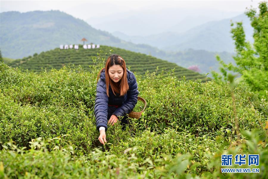 4月22日,在平利县老县镇蒋家坪村茶业现代示范园区,茶农周丽在采茶。 近年来,陕西省安康市平利县老县镇着力推动易地扶贫搬迁建设,积极发展社区工厂、农业产业,促使居民稳定就业,脱贫增收。同时,该镇教育、医疗等社区服务功能不断完善,使群众生活有了更好的保障。 新华社记者 邵瑞 摄