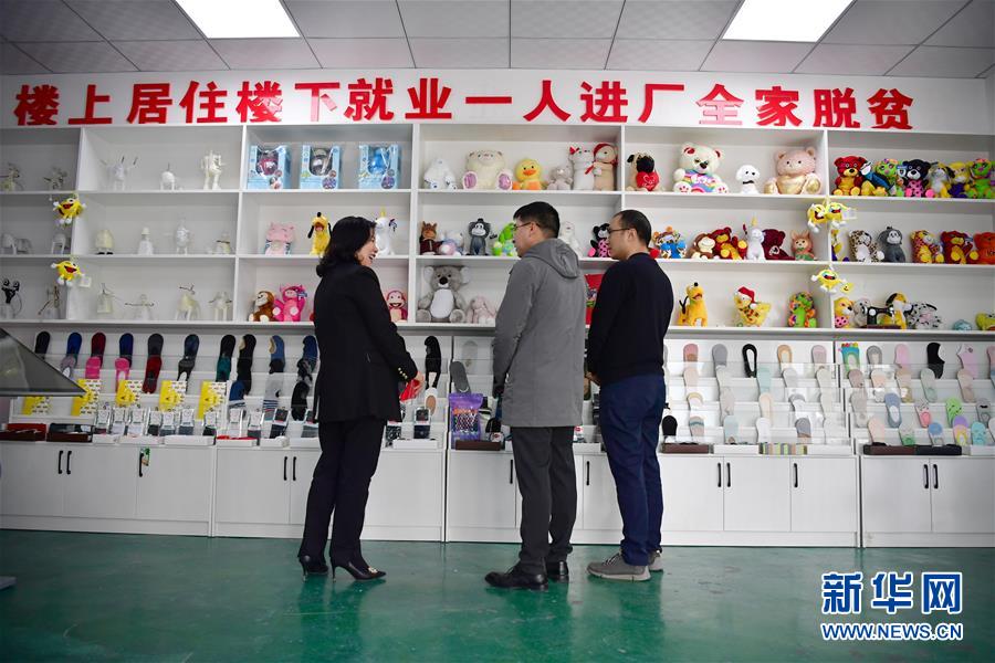 4月22日,在平利县老县镇锦屏社区的社区工厂,一家企业负责人顾芝红(左一)向客人介绍产品。 近年来,陕西省安康市平利县老县镇着力推动易地扶贫搬迁建设,积极发展社区工厂、农业产业,促使居民稳定就业,脱贫增收。同时,该镇教育、医疗等社区服务功能不断完善,使群众生活有了更好的保障。 新华社记者 邵瑞 摄