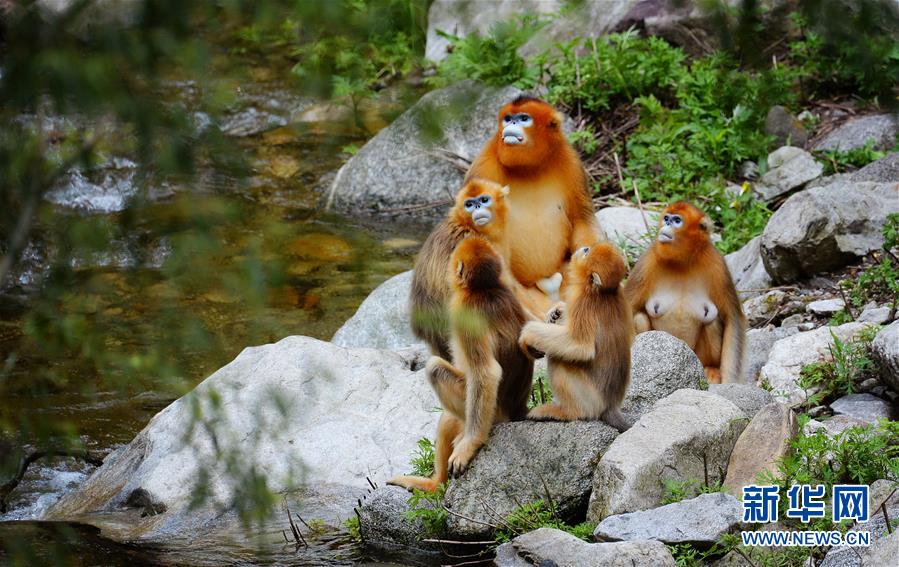 陕西佛坪县熊猫谷内拍摄的秦岭金丝猴(2018年8月3日摄)。 秦岭,横贯中国中部的东西走向山脉,是中国地理上重要的南北分界线。作为生态屏障的秦岭山脉还发挥着调节气候、保持水土、涵养水源、维护生物多样性等诸多功能。 同时,秦岭也被誉为中国的“生物基因库”,域内现有陆生野生动物580余种。被称为“秦岭四宝”的大熊猫、朱鹮、羚牛、金丝猴四种珍稀动物,其种群和栖息地面积近年来不断增长。 新华社记者 刘潇 摄