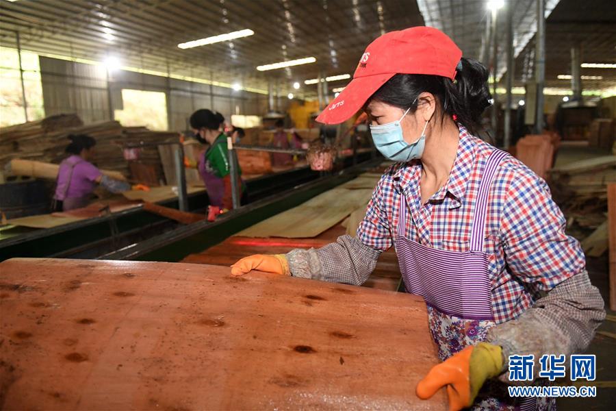 4月23日,广西隆林各族自治县者保乡一家木业企业的工人在生产板材。 新华社记者 陆波岸 摄