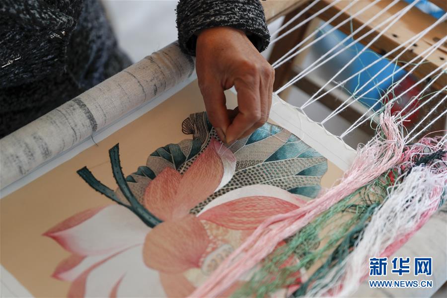 4月23日,巫溪县天元乡宁河刺绣扶贫车间绣娘在缝制刺绣挂画。 新华社发(黄伟摄)