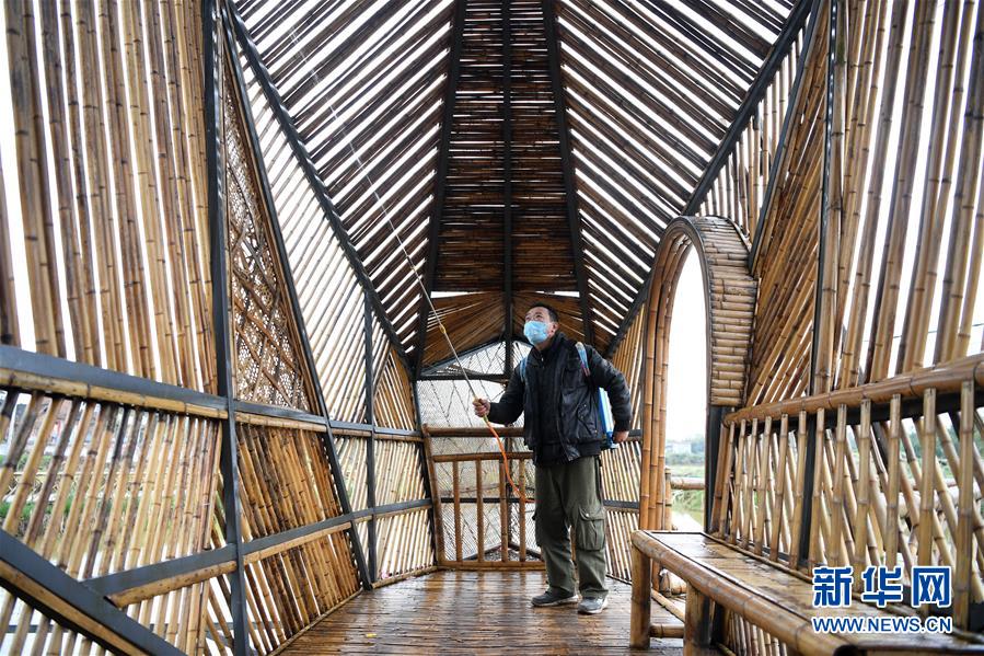 4月23日,在荣昌区清江镇,当地村民对特色民宿内的景观进行清扫工作。 近年来,重庆市荣昌区清江镇依托“绿水青山”的环境优势,将农村闲置住宅逐步改造成特色民宿,通过特色民宿带动乡村旅游,为乡村振兴注入活力。 新华社记者 唐奕 摄