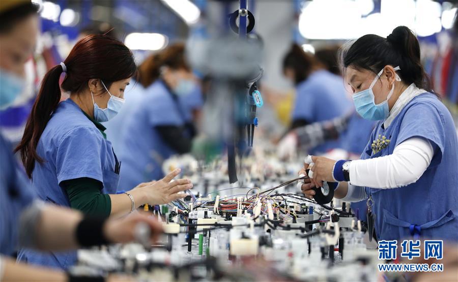 4月23日,德科斯米尔(鞍山)线束系统有限公司的工人在车间内生产汽车线束。 复工复产以来,辽宁省鞍山经济开发区帮助区内的外资企业做好疫情防控的同时,助力重点外资企业有序复工复产。 新华社记者 姚剑锋 摄