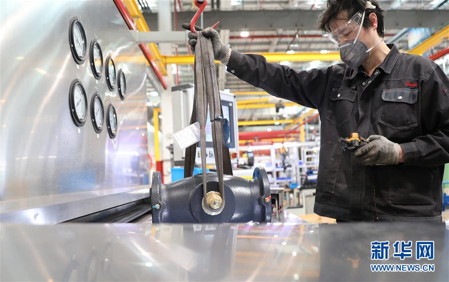 4月23日,丹佛斯(鞍山)控制阀有限公司的工人在车间内对产品进行测试。 复工复产以来,辽宁省鞍山经济开发区帮助区内的外资企业做好疫情防控的同时,助力重点外资企业有序复工复产。 新华社记者 姚剑锋 摄