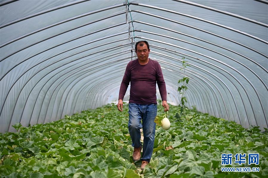 在郸城县秋渠乡任岭村的甜瓜大棚内,村民摘下成熟的甜瓜,准备零售(4月23日摄)。新华社记者张浩然摄