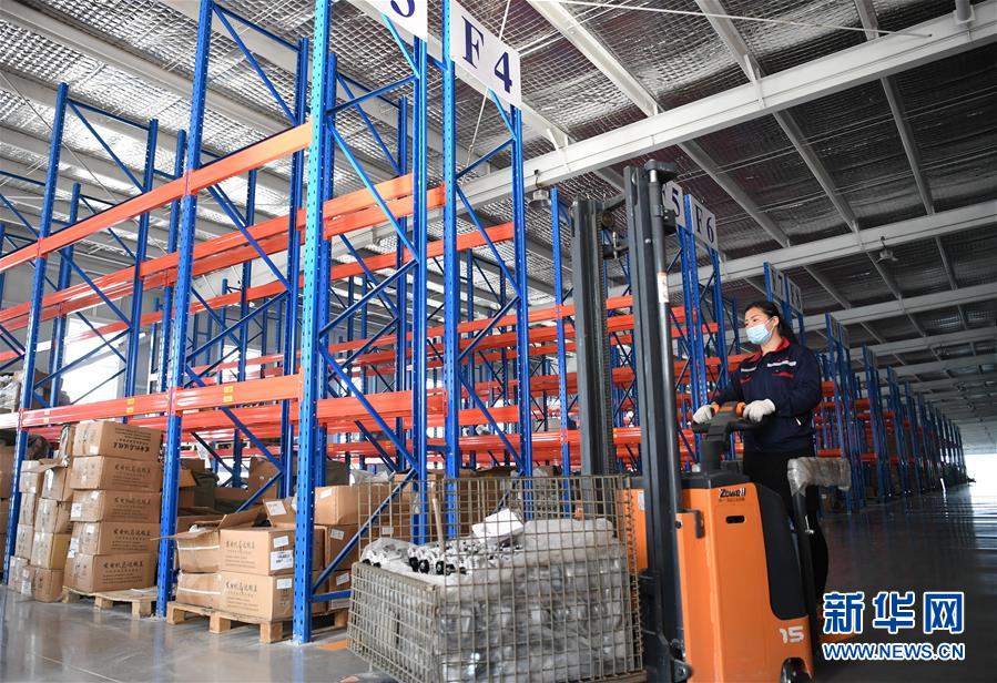 4月24日,河北省河间市一家汽车配件再制造企业的员工在车间驾驶叉车搬运产品。新华社记者 朱旭东 摄