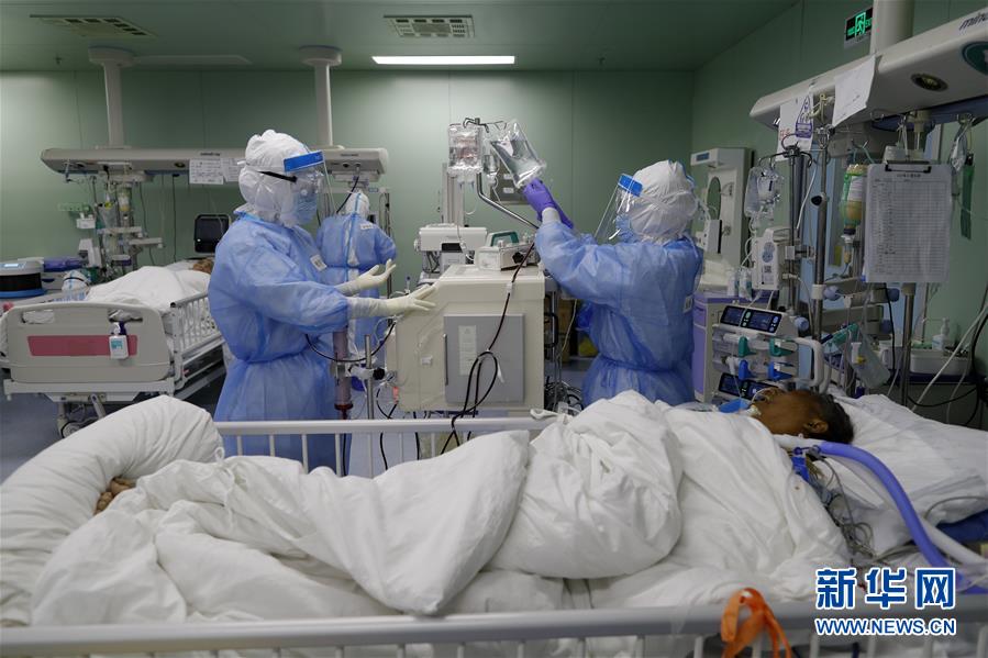 4月24日,在位于武汉的华中科技大学同济医学院附属协和医院西院,医务人员在护理核酸检测结果转阴的新冠肺炎病人。新华社记者 沈伯韩 摄