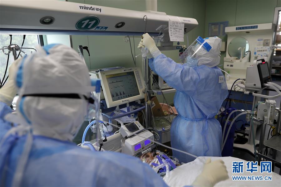 4月24日,在位于武汉的华中科技大学同济医学院附属协和医院西院,医务人员何珏(右)在护理核酸检测结果转阴的新冠肺炎病人。 新华社记者 沈伯韩 摄