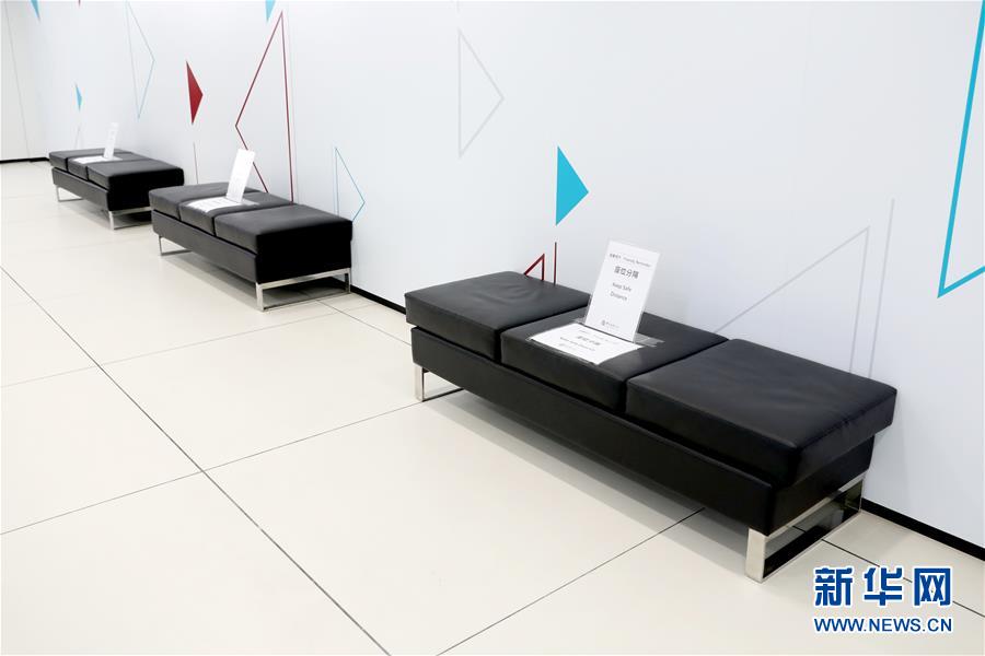 4月23日,在中银香港永安集团大厦分行,顾客等候区都有间隔提示牌。 新华社记者 吴晓初 摄