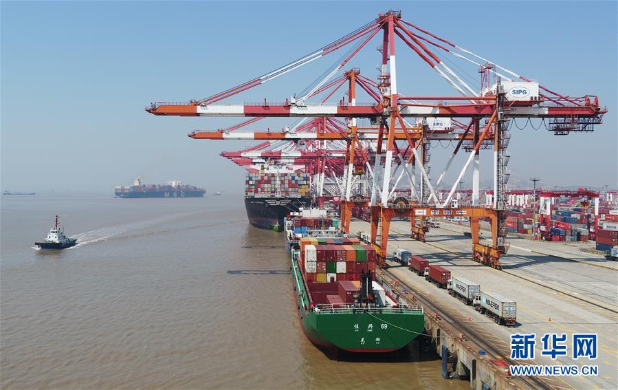 这是3月18日拍摄的上海洋山港集装箱码头(无人机照片)。新华社记者 丁汀 摄