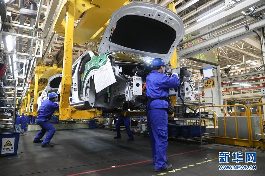 工人在上汽临港工厂总装车间生产线上作业(2月27日摄)。新华社记者 丁汀摄