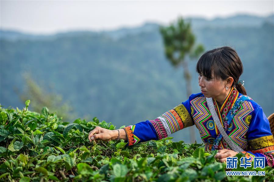 4月11日,在云南省勐海县布朗山乡,拉祜族妇女娜四在采茶。原本连育秧苗、撒化肥都不会的娜四,在扶贫干部指导下,全家经过几年发展已种下18亩茶树。除了茶树,娜四家去年还种了4亩水稻,一年就收了2000多公斤稻谷。 新华社记者 胡超 摄