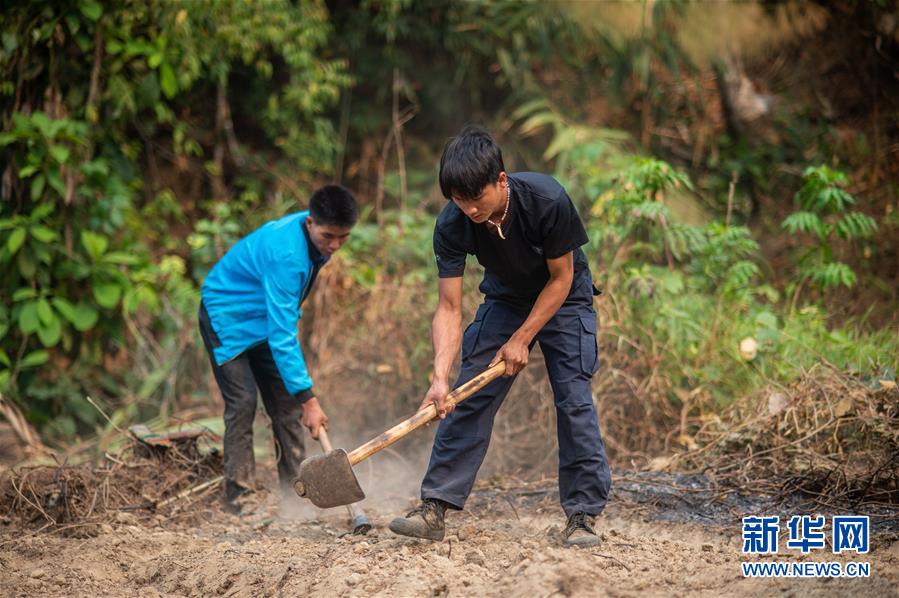 4月10日,在云南省勐海县布朗山乡曼囡村曼班三队,村民扎培(右)在田里劳作。 新华社记者 胡超 摄