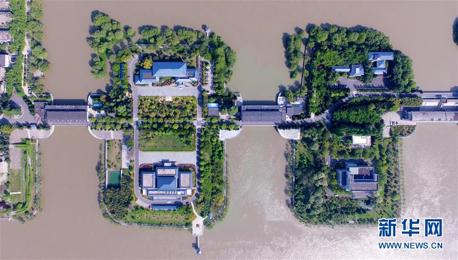 4月26日拍摄的江苏省扬州市江都水利枢纽风景区景色(无人机照片)。 时值四月,各地春意盎然,春景如画。 新华社发(孟德龙 摄)