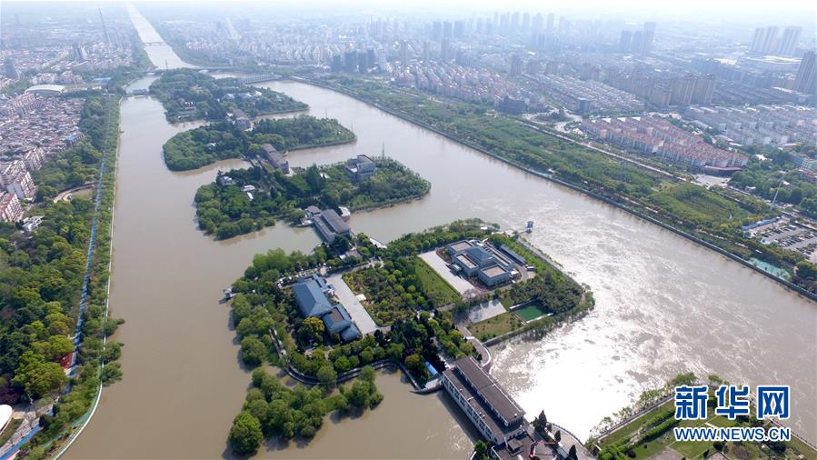 4月26日拍摄的江苏省扬州市江都水利枢纽风景区景色(无人机照片)。 时值四月,各地春意盎然,春景如画。 新华社发(孟德龙 摄)