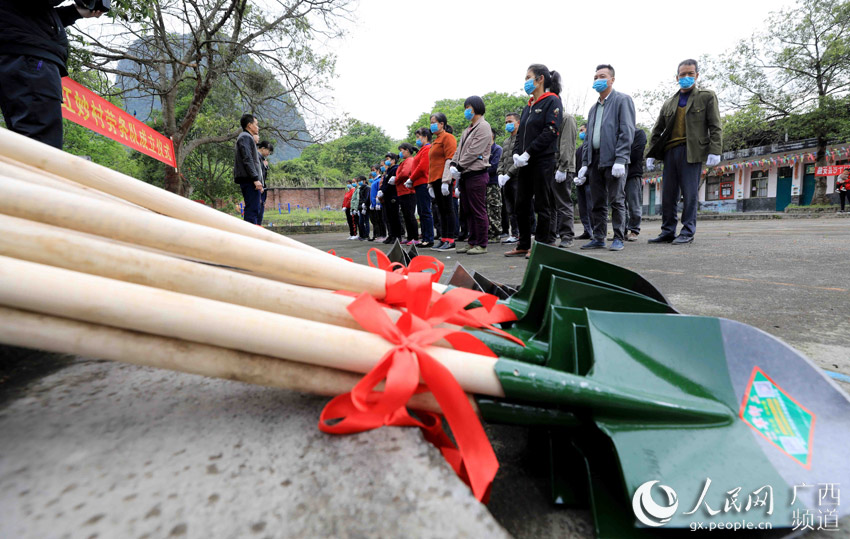 广西柳州市融安县沙子乡红妙村拍摄的劳务队成立。谭凯兴摄