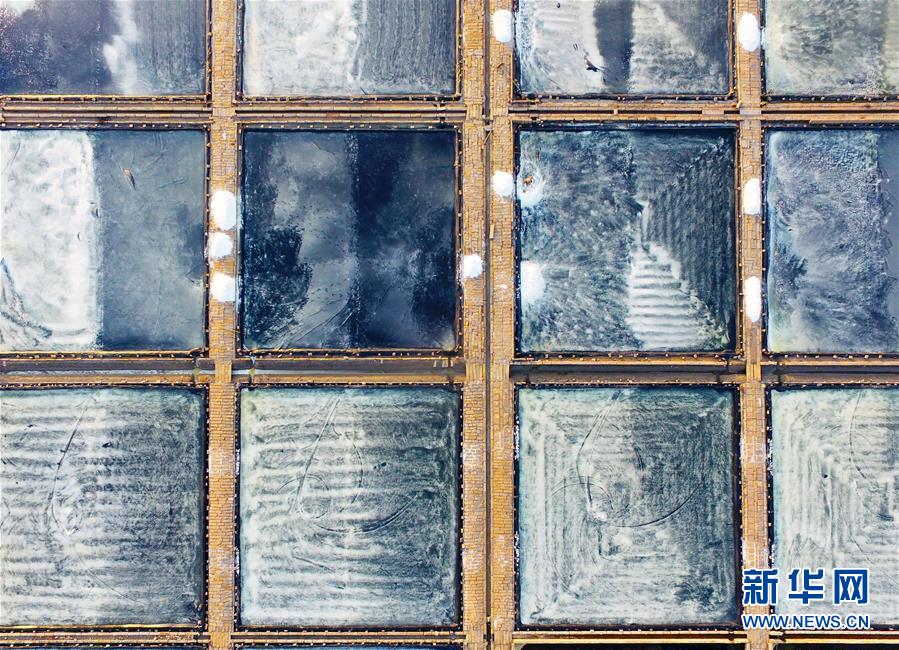 这是莆田盐场的晒盐池(4月27日摄,无人机照片)。 莆田盐场位于福建省莆田市秀屿区东峤镇,辛勤劳作的盐工、纵横交错的晒盐池,共同构成如画的风景。 新华社记者 魏培全 摄
