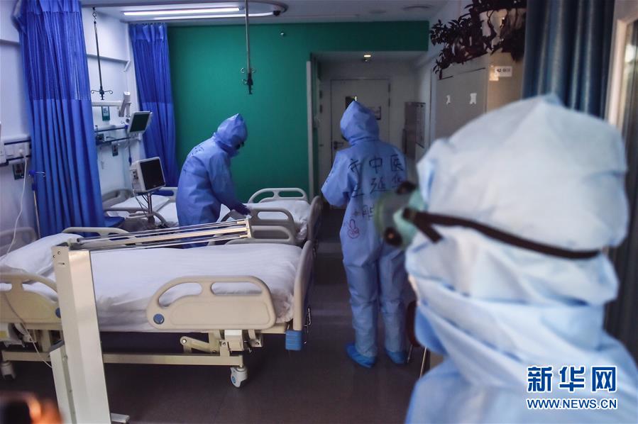 4月28日,医护人员在患者出院后,清理病房。 当日上午,北京小汤山医院最后一批新冠肺炎治愈患者出院。 新华社记者彭子洋摄