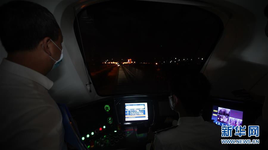 4月27日23点30分许,测试工作人员在中国首列商用磁浮2.0版列车驾驶室内进行运行数据记录。 4月28日凌晨,中国首列商用磁浮2.0版列车在长沙磁浮快线跑出了160公里的时速,完成了最高设计速度的达速测试。这标志着中国自主磁浮技术在中速领域的攻关取得重大成功。 新华社发(李铁 摄)