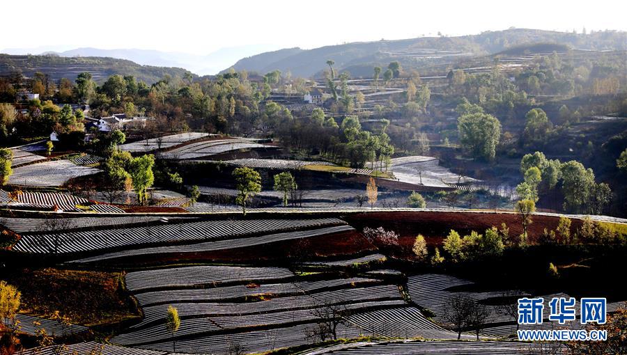 这是在洛南县石门镇拍摄的地膜田园风光(4月24日摄)。 日前,在秦岭深处的陕西省商洛市洛南县的多个乡镇,当地群众用可降解塑料薄膜覆盖种植辣椒、烤烟等作物,呈现出一道道美丽的地膜田园风光。 新华社发(陈亚民 摄)
