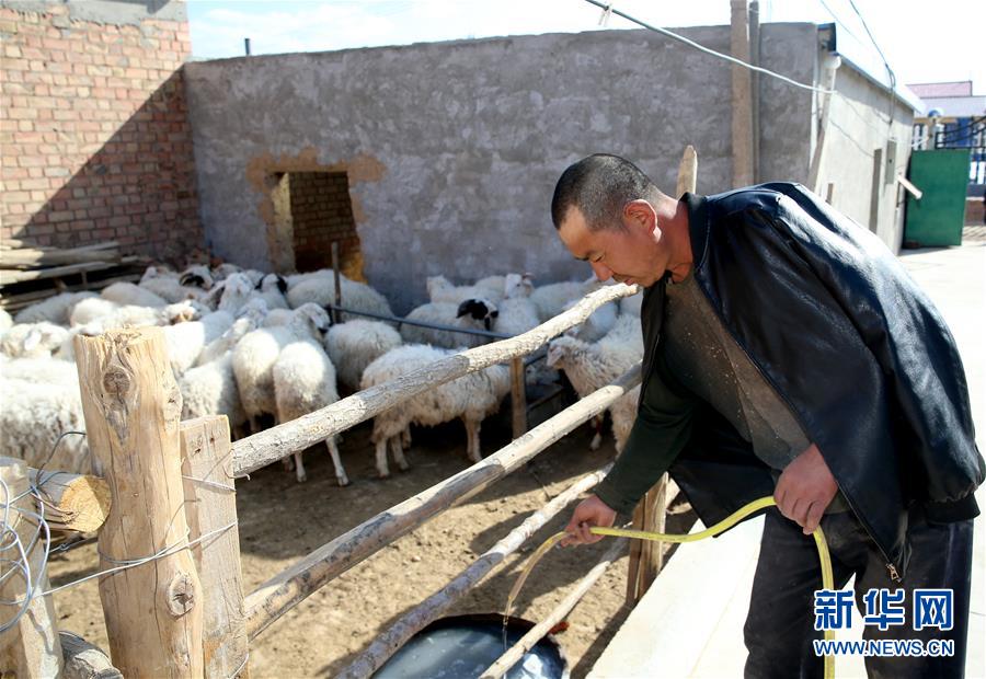 4月27日,同心县田老庄乡石塘岭村村民田忠龙使用家中自来水给羊喂水。 近年来,宁夏回族自治区吴忠市同心县通过建设智慧水务中心、普及一体化测控智能闸门、饮水入户等措施,保障当地群众生活和种植业、养殖业用水,助力当地群众脱贫致富。据了解,今年在保证全县饮水安全和种植业、养殖业用水充足的前提下,同心县将严格控制用水总量,实施结构节水。 新华社记者 贾浩成 摄