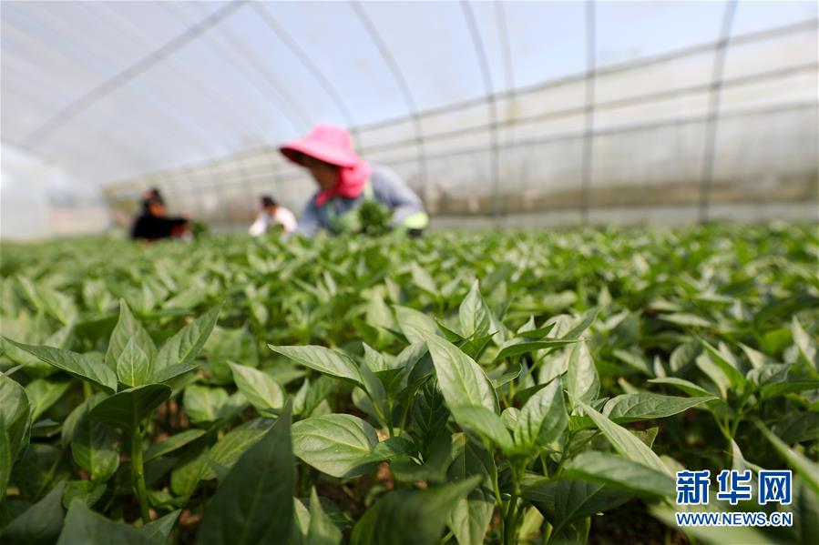4月28日,农民在贵州省丹寨县金泉街道老八寨村辣椒育秧专业合作社大棚内采收辣椒秧苗。 近年来,贵州省黔东南苗族侗族自治州丹寨县把特色农业作为农民脱贫致富的主导产业,建立了161个产业合作社,覆盖全县所有行政村和贫困户,大力引进吊瓜、中药材、辣椒等高产值的经济作物。合作社产业收益的百分之七十分配给贫困户,实现“村村有脱贫产业、户户有增收门路”。 新华社发(黄晓海 摄)