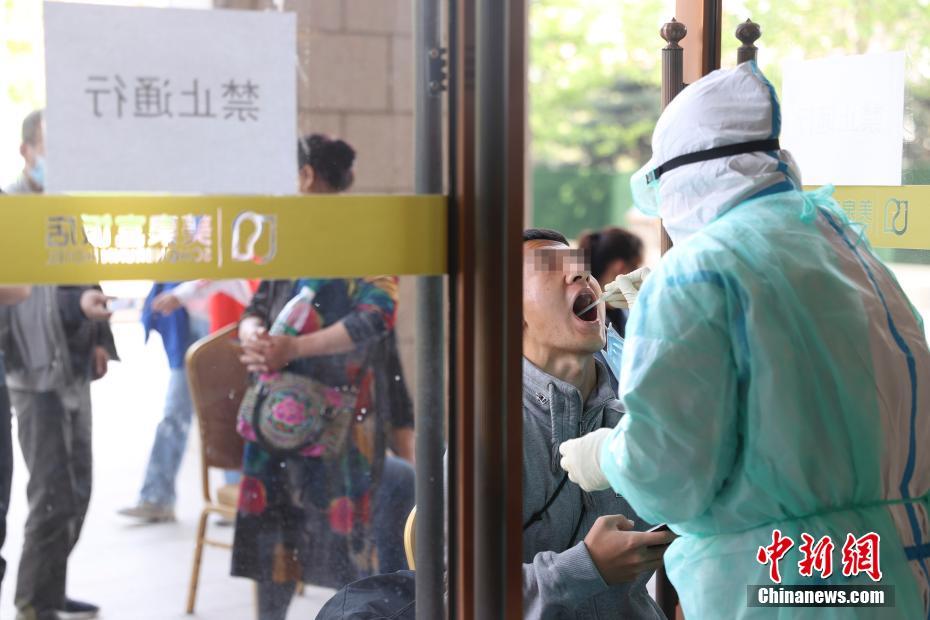 4月28日,在北京市海淀区一家酒店内,一名工作人员为市民进行咽拭子采样。这家酒店是北京优讯医学检验实验室设立的六个新冠肺炎病毒核酸检测采样点之一。采样结束后,市民可在9至24小时内获得检测结果。国家卫生健康委员会于27日提出要扩大检测范围,做到重点人群“应检尽检”。目前北京已有46家医学机构开展新冠肺炎病毒核酸检测服务。中新社记者 蒋启明 摄