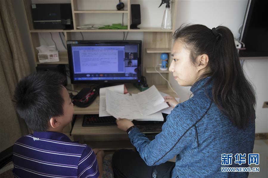 4月28日,张鸿博在家中辅导弟弟学习新的课程。 2000年出生的张鸿博是黑龙江省绥芬河市人,是燕山大学体育学院大二的一名学生。4月起,她白天在家照顾弟弟,学习网课与专业知识,晚上赶到绥芬河入城口做三个小时的志愿服务,为来往司机检测体温,登记信息。“志愿者工作虽然辛苦,但是能为自己的家乡做一点力所能及的事情,我很开心。”张鸿博说,她希望能有更多青年加入到志愿者团队当中,奉献自己的力量。 新华社发(张涛摄)