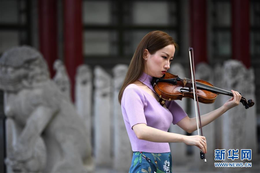 4月28日,在西安碑林博物馆,西安交响乐团小提琴首席伍思雨在“云上国宝”音乐会彩排前练习。 当日,西安交响乐团的乐手来到西安碑林博物馆,为将于5月2日举行的“云上国宝”音乐会进行彩排。“云上国宝”音乐会将通过网络直播的形式向观众融合展示古典音乐和国之瑰宝,开启音乐与国宝的“对话”。 新华社记者 李一博 摄