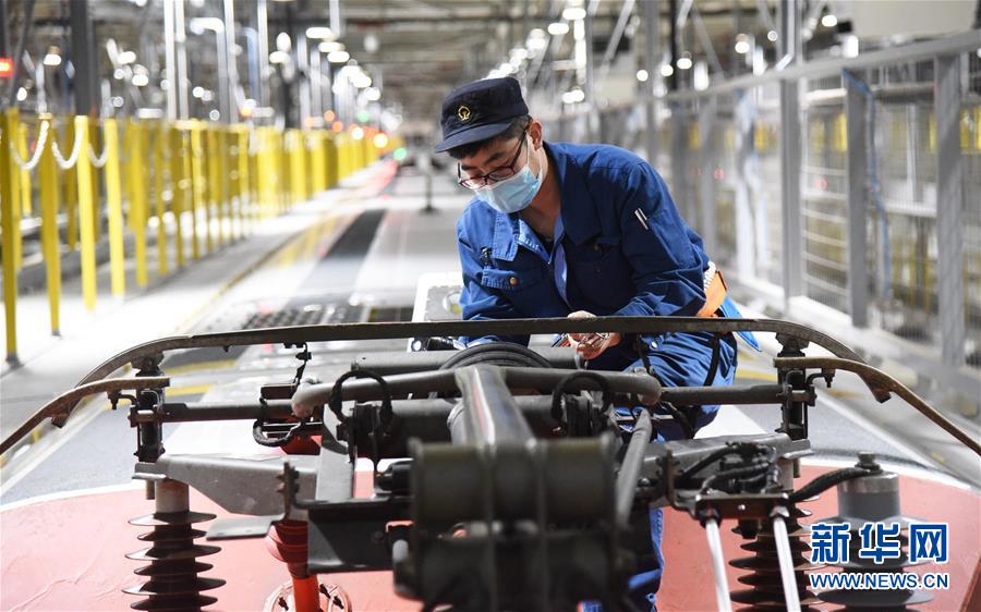 4月21日,中国铁路济南局集团公司青岛动车段临沂北动车所的工作人员在检查日兰高铁列车。新华社记者 王凯 摄