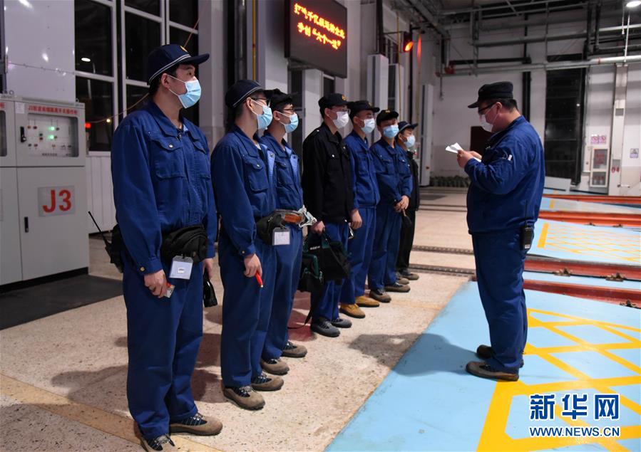 4月21日,中国铁路济南局集团公司青岛动车段临沂北动车所的工作人员在检修日兰高铁列车前接受任务分派。新华社记者 王凯 摄