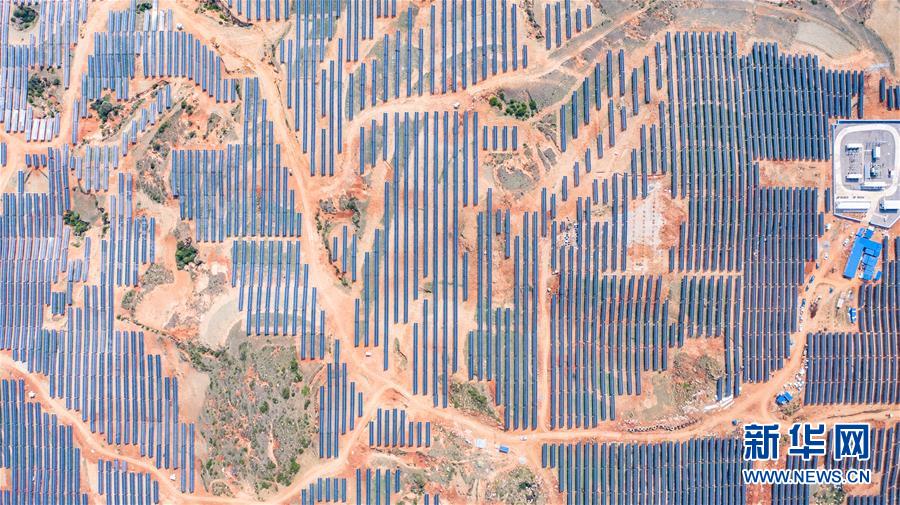 贵州金元威宁斗古瓦厂农业光伏电站(4月28日摄,无人机照片)。新华社记者 陶亮 摄