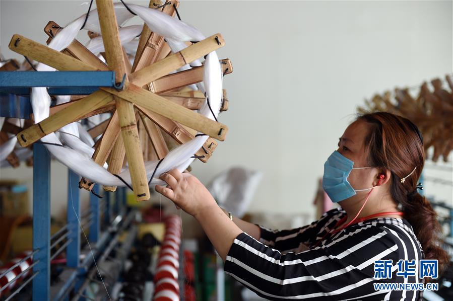 4月28日,在槐林镇大汪村,村民在制作渔网。 安徽省巢湖市槐林镇渔网产业历史悠久,是全国规模较大的渔网生产和出口的基地之一。全镇从事渔网生产、加工、销售等相关企业500余家,从业人员近3万人,产品远销60多个国家和地区。 新华社发(周牧摄)