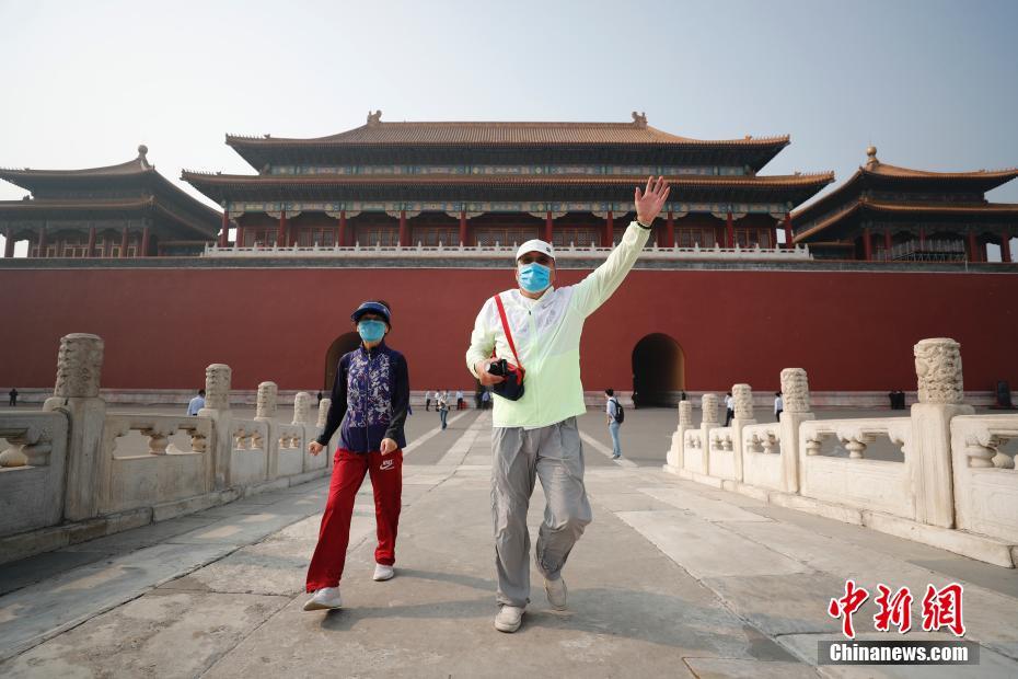 5月1日,游客从午门进入故宫参观。当日起,北京故宫博物院恢复开放,实行预约、错峰、限流参观。故宫此次每日限流从原本的8万人次降低到每日5千人次。目前,故宫博物院门票只支持网上实名制预约购票,不支持现场购票。中新社记者 杜洋 摄